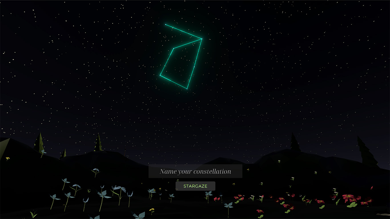 3 - Stargaze together (Press “STARGAZE” and all the constellation data stored by each player will appear in the sky)